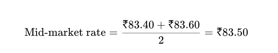 - Mid-market rate: $1 = ₹83.50
